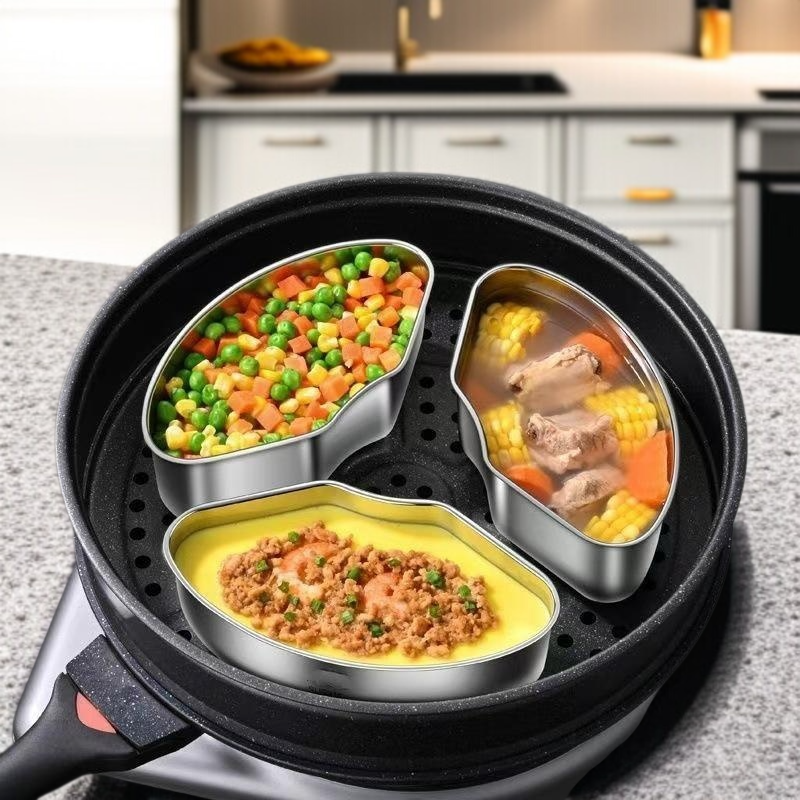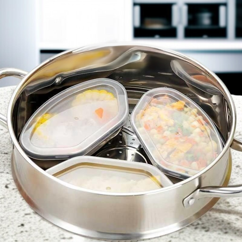 Color: Fan-shaped Steaming Box & Lid (1 piece), Fan-shaped Steaming Box & Lid (2 pieces), Fan-shaped Steaming Box & Lid (3 pieces), Fan-shaped Steaming Box & Steel Lid (1 piece), Fan-shaped Steaming Box & Steel Lid (2 pieces), Fan-shaped Steaming Box & Steel Lid (3 pieces)